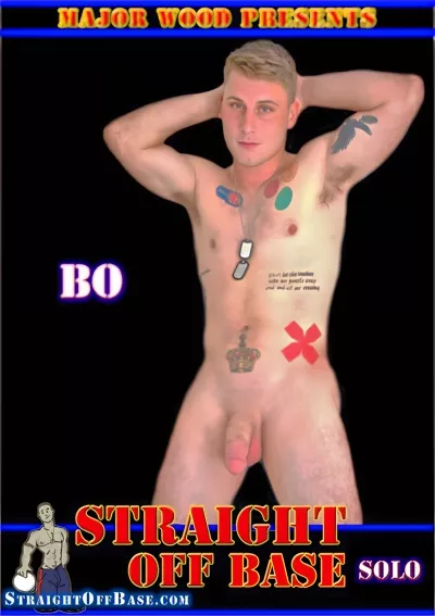Sgt. Bo, a beefy, tatted 24-year-old Marine stud from Rhode Island, stands at 5'9" and weighs 160 lbs. With a thick 7-inch cock and devotion to pleasing, he takes his fat cock in hand and unleashes cum spurts on his crown tattoo and furry belly. Straight off base, this devildog is a porn star, ready to satisfy.